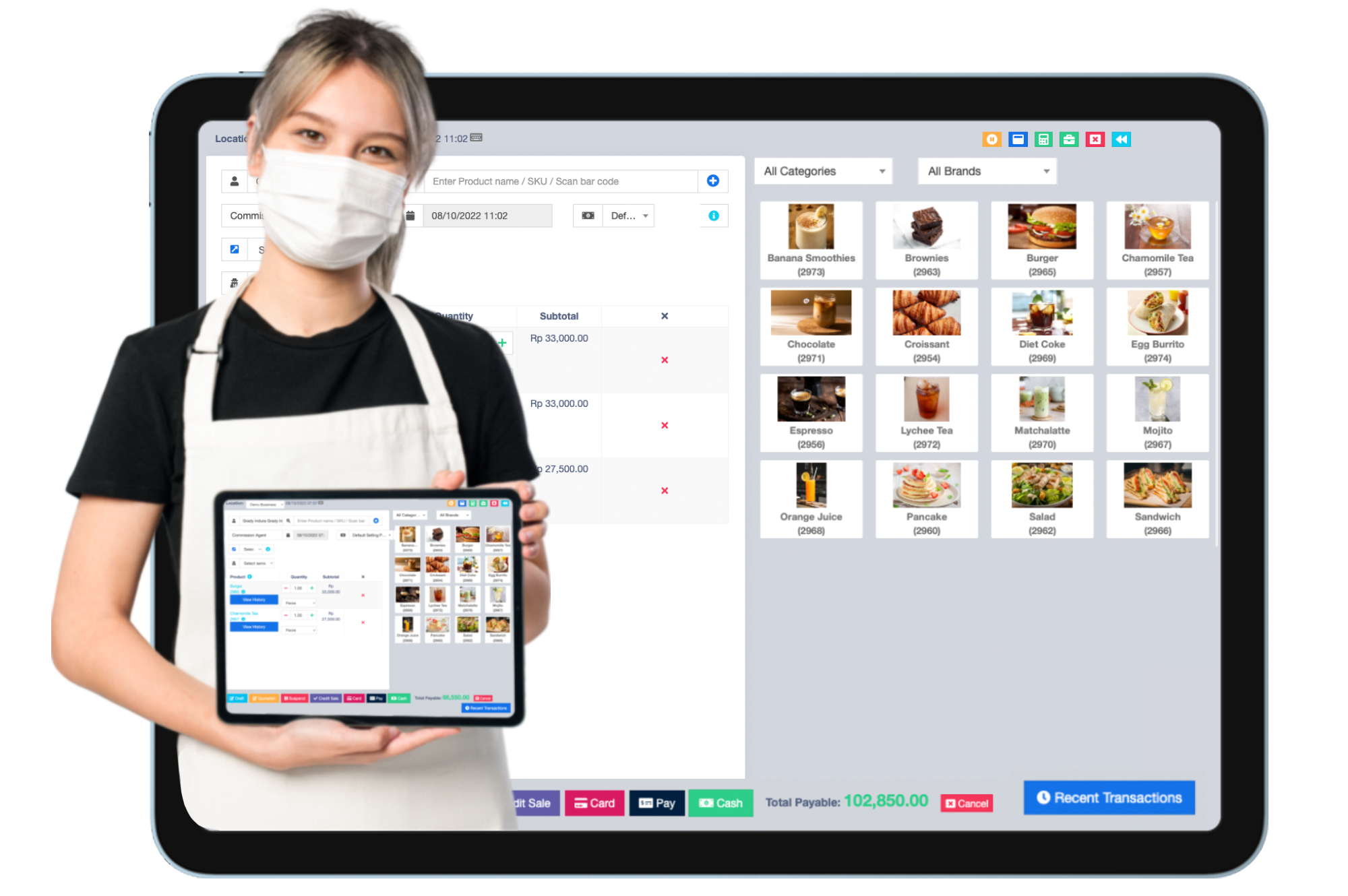 Tampilan POS pada sistem kasir dengan tampilan device yang bisa menyesuaikan perangkat yang digunakan oleh user.